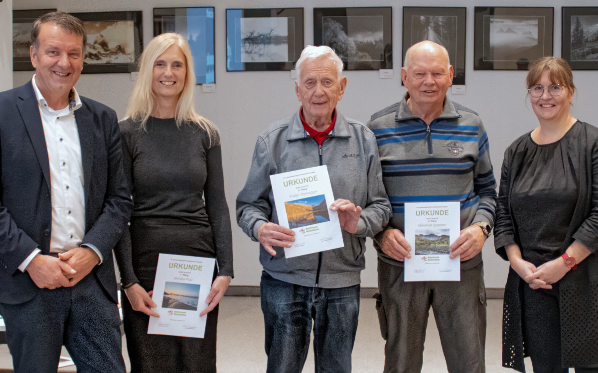 siegerehrung lm 2025 siegerehrung lm 2025Höchst bewertete Bilder (40 Punkte)v.l.n.r.: Vizebürgermeister Josef Maierhofer, Désirée Gruber (1 höchst bewertetetes Bild), Walter Steinegger (2 höchst bewertete Bilder ) und Vizebürgermeisterin Eva Bischofer